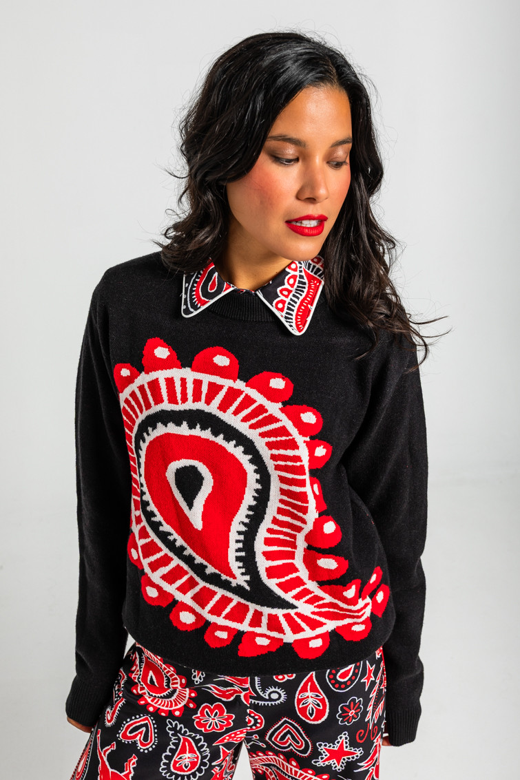 SWETER TEJIDO SENCILLO NEGRO CON ESTAMPADO PAISLEY CACHEMIR "ALMA LIBRE" REF. AW250101