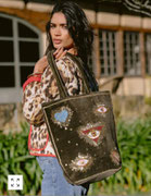 SHOPPER TEJIDO JACQUARD LC FLOCADO CRUDO-NEGRO R